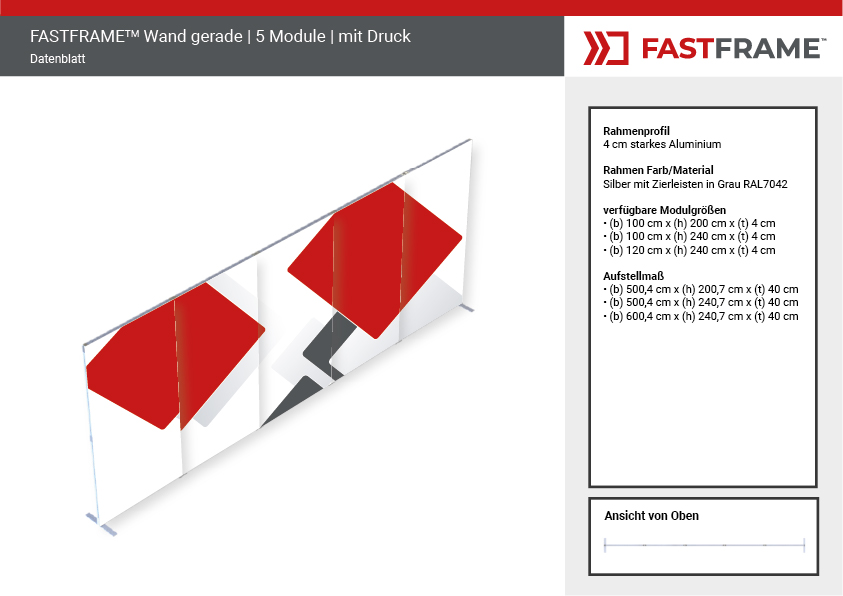 FASTFRAME™ gerade Wand mit fünf Modulen von werbe.express aus Münster, Coesfeld, Warendorf, Telgte, Ahlen, Hamm, Dülmen, Ibbenbüren, Rheine und Greven