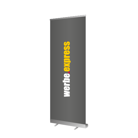 Mit dem Roll-Up Banner Budget von werbe.express in Münster, Coesfeld, Warendorf, Telgte, Ahlen, Hamm, Dülmen, Ibbenbüren, Rheine und Greven erhalten Sie ein Banner aus der Basic-Reihe. Dieser ist Silber eloxiert und kommt mit zwei ausklappbaren Füßen sowie einer Klemmschiene daher. Auch für Messen, Events, Ausstellungen, Werbeaktionen und Ähnliches eignet der Roll-Up Banner sich ideal, denn er kann einfach und bequem in der mitgelieferten Transporttasche transportiert werden.